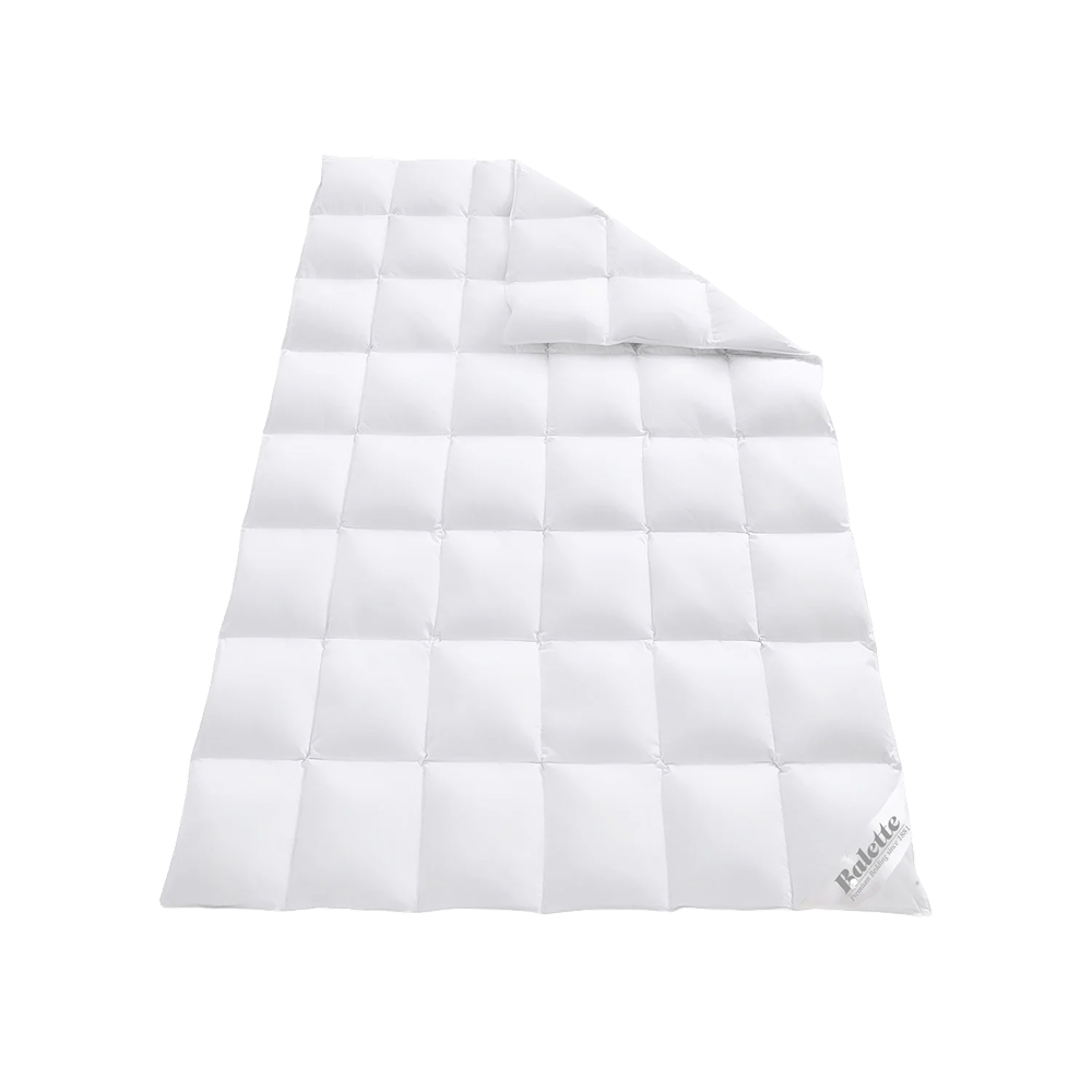 Die hochwertige Daunenfüllung sorgt für hohe Bauschkraft: warm, ohne zu beschweren. Sie speichert Wärme und lässt gleichzeitig Luft zirkulieren – so bleibt das Bettklima angenehm trocken und ausgeglichen, selbst wenn man zum Schwitzen neigt. Langlebige Füllelastizität macht die Decke besonders pflegeleicht.